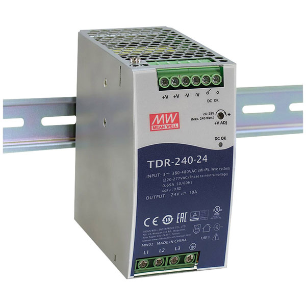 Mean Well TDR-240-48 TDR Rail PSU 240W 48V DC 5A DIN-mounted fanless design