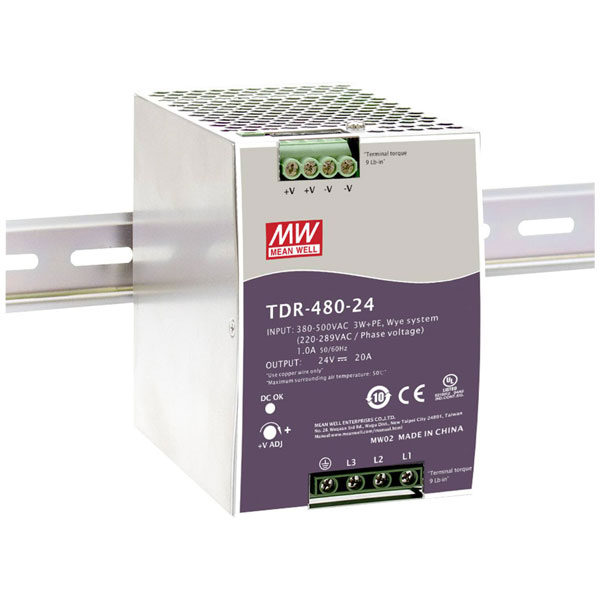 Mean Well TDR-480-24 TDR Rail PSU 24V 480W 20A 3-phase compact design
