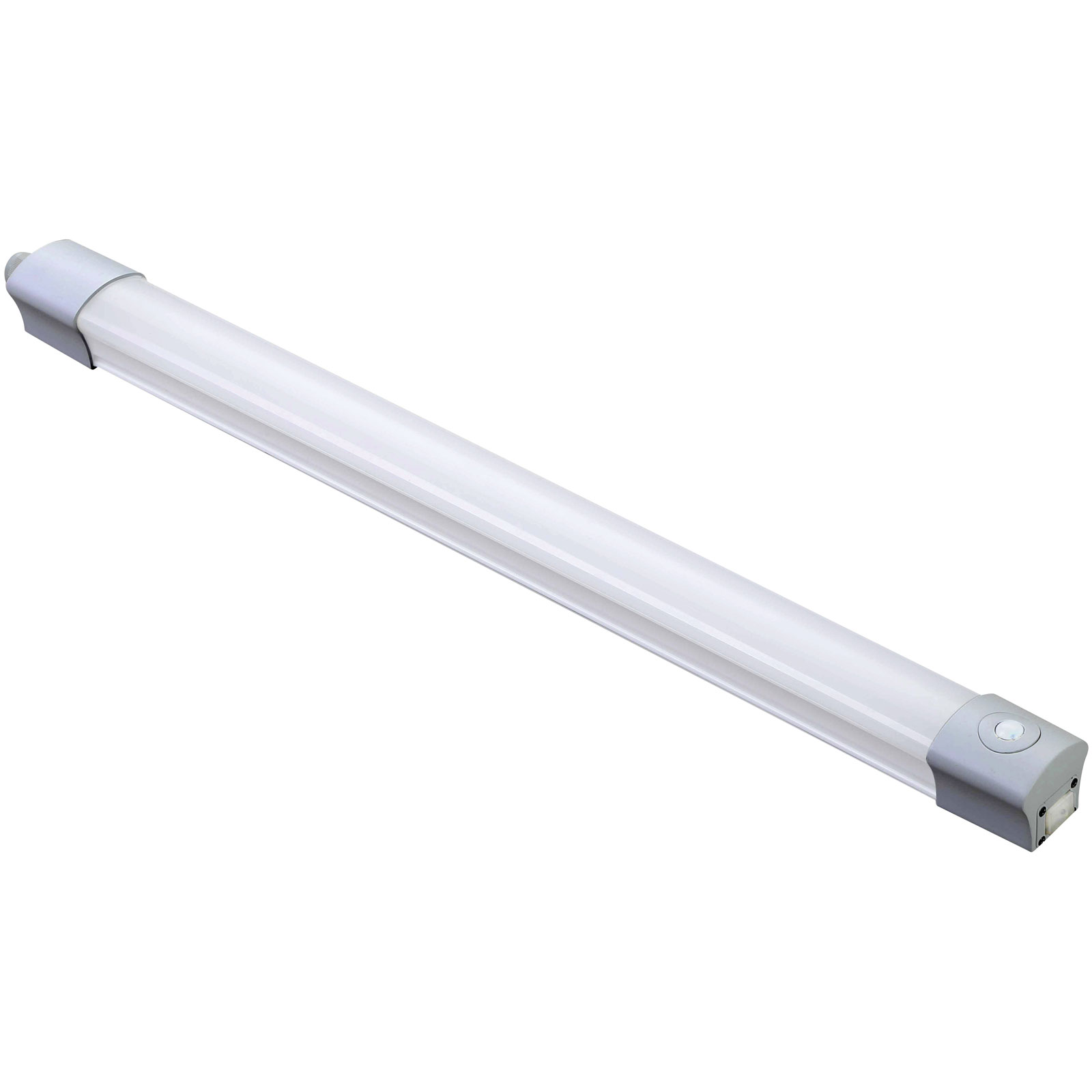 (L x W x H) 62.5 x 4.8 x 4.3 cm 62.5cm 16W 1600lm LED wet room light (+ motion detector) Built-in LED 5min LED (monochrome) Neutral white 4000K 4000 K 5m n.rel. Grey 4.3cm IP65 Yes Plastic Rectangular 230V
