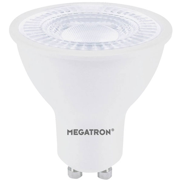 The Megatron MT65009 is a 4.8 W LED bulb featuring a warm white monochrome light, ideal for creating cosy atmospheres. With dimensions of 50 mm in diameter and 55 mm in length, it fits standard GU10 sockets. Its energy efficiency rating of 'F' makes it suitable for domestic lighting solutions where energy conservation is a priority.