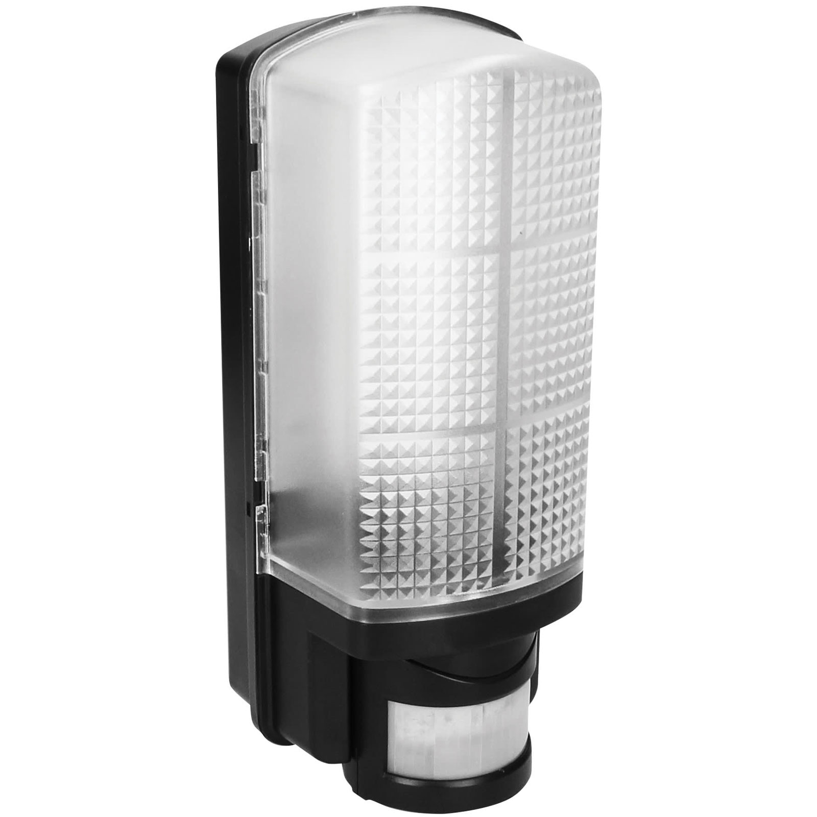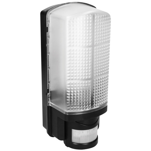 The Meridian LED Bulkhead with PIR motion detection for added security; 120° 10m detection area complete and LUX control. This energy-efficient rectangular bulkhead has an integrated 9W (54W equivalent) LED bulb with a 30,000-hour average rated lifespan. Impact-resistant polycarbonate body and high-quality prismatic diffuser.