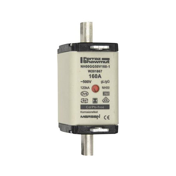 The Mersen NH fuse size 00 is a robust electrical safety device, designed for 160 A and 500 V applications. It offers reliable protection for circuit installations with its gG characteristic. Typically used in industrial and commercial environments, it safeguards electrical systems from overcurrent conditions.