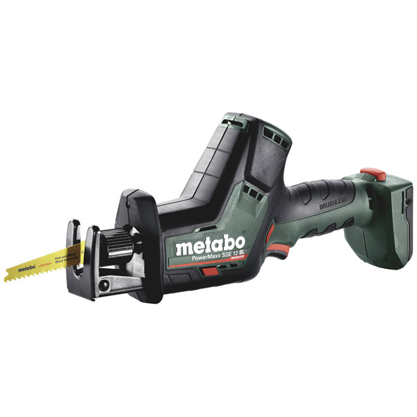 The Metabo POWERMAXX SSE 12 BL is a cordless recipro saw known for its compact design and efficiency. It operates on a 12 V system and is typically used for sawing wood and metal in tight spaces where portability is required. This model includes a case but does not come with a battery.