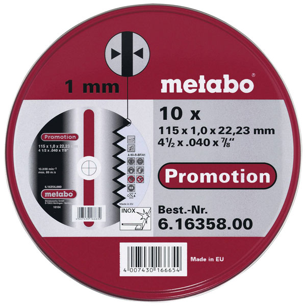 Metabo 616358000 Cutting Disc 115mm 10pcs Steel/Stainless Steel