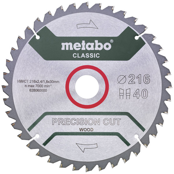 Metabo 628652000 Precision Cut Wood Blade 216x30 mm 40 cogs
