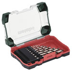 Metabo produces comprehensive drill bit sets designed for metal drilling, including various assortments suitable for different drilling needs.