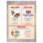 A poster that displays the differences between ferrous, non-ferrous and alloy metals.