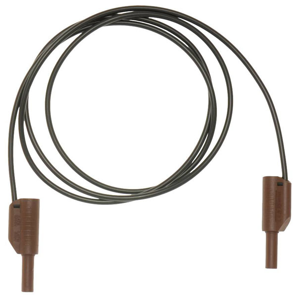 The Metrel A 1342 Safety test lead is a 1.50 m long cable with 4 mm jacks on both ends, finished in black and brown. Manufactured by Metrel, it features safety attributes and reliable performance. This test lead is typically used for electrical testing and measurement applications.