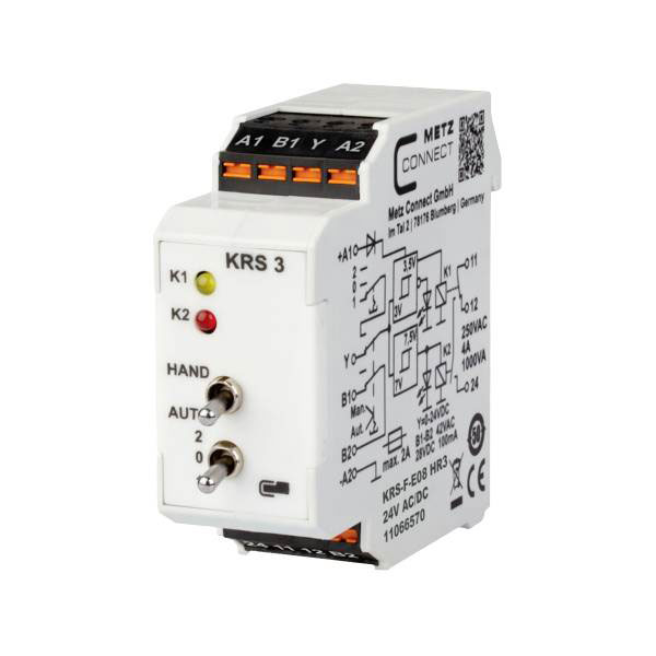 The Metz Connect 11066570 is a threshold switch designed for monitoring AC systems with a voltage of 24 V. It features a single change-over relay and supports maximum DC operation, providing reliable performance for electrical monitoring tasks. This component is typically used in safety and automation systems to ensure stable operation and protection against voltage irregularities.
