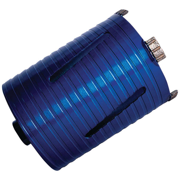 The MEXCO Slotted Dry Core Drill, XCEL Grade. Laser welded, castellated segments allow for a faster and accurate drilling experience due to the high diamond grit concentration and rooftop segments.