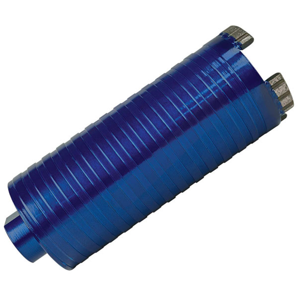 The MEXCO Solid Barrel Dry Core Drill, XCEL Grade. Laser welded, castellated segments allow for a faster and accurate drilling experience due to the high diamond grit concentration and rooftop segments.