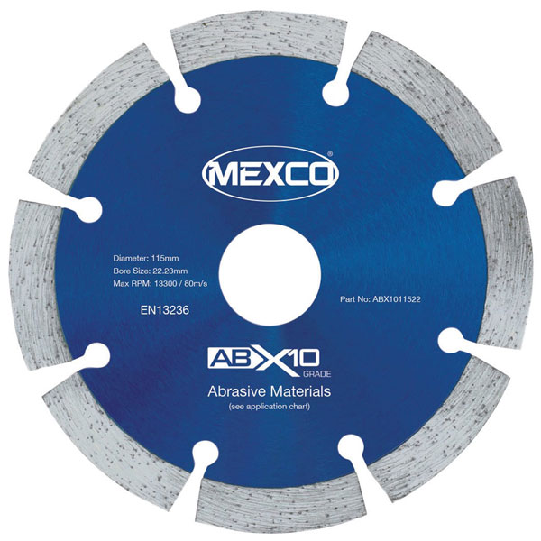 MEXCO ABX1011522 Abrasive Materials X10 Grade Diamond Blade 115 x 22.23mm