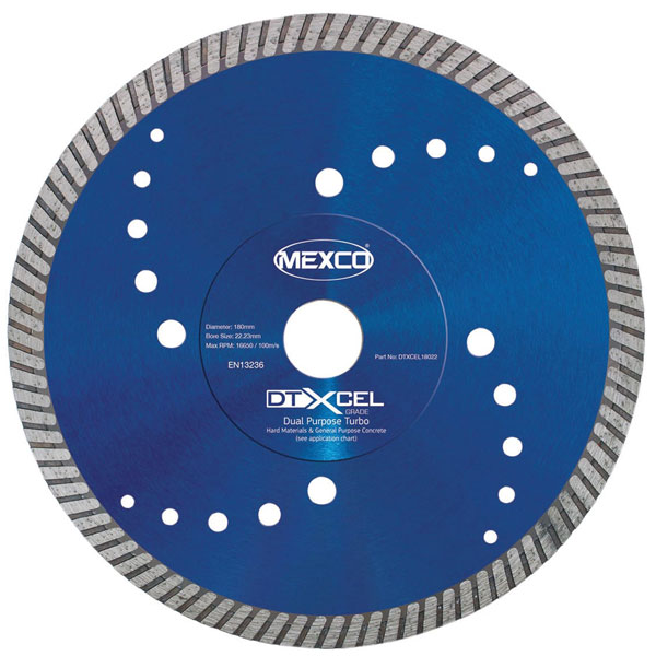 MEXCO DTXCEL18022 XCEL Grade Dual Purpose Turbo Diamond Blade 180 x 22mm