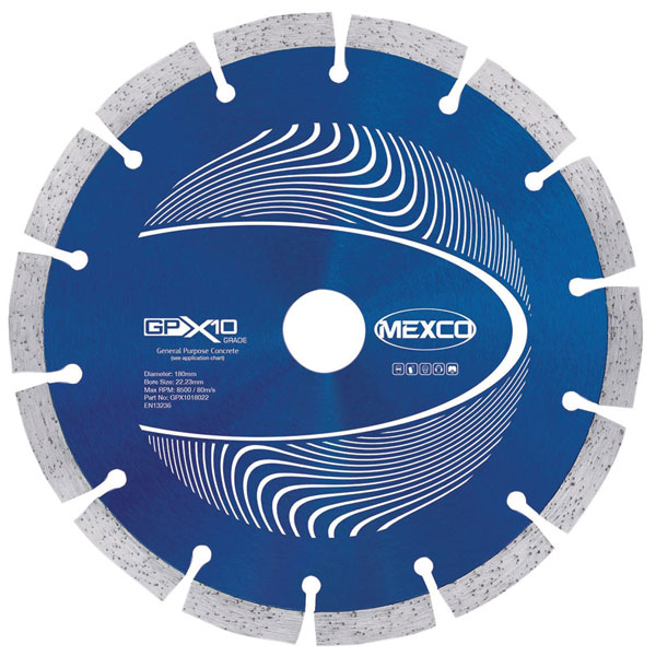 MEXCO GPX10 Concrete Diamond Blades have been specifically designed for cutting a wide range of general purpose building materials. The GPX10 offers a cost effective solution for the user who requires a diamond blade which can cope with the cutting of the most widely used non-abrasive building materials.