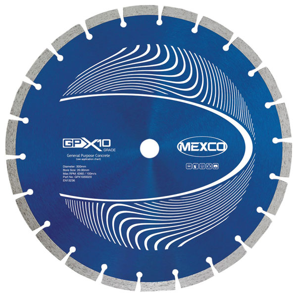 MEXCO GPX10 Concrete Diamond Blades have been specifically designed for cutting a wide range of general purpose building materials. The GPX10 offers a cost effective solution for the user who requires a diamond blade which can cope with the cutting of the most widely used non-abrasive building materials.
