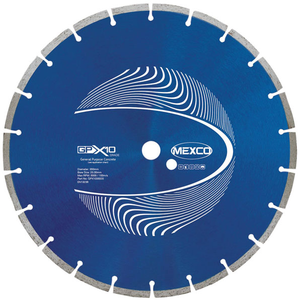 MEXCO GPX10 Concrete Diamond Blades have been specifically designed for cutting a wide range of general purpose building materials. The GPX10 offers a cost effective solution for the user who requires a diamond blade which can cope with the cutting of the most widely used non-abrasive building materials.