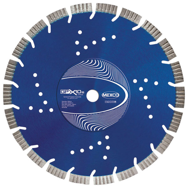 MEXCO GPX10-15 Concrete Diamond Blades have been specifically designed for cutting a wide range of general purpose building materials. The GPX10-15 offers a cost effective solution for the user who requires a diamond blade which can cope with the cutting of the most widely used non-abrasive building materials.