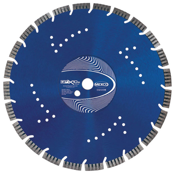 MEXCO GPX10-15 Concrete Diamond Blades have been specifically designed for cutting a wide range of general purpose building materials. The GPX10-15 offers a cost effective solution for the user who requires a diamond blade which can cope with the cutting of the most widely used non-abrasive building materials.