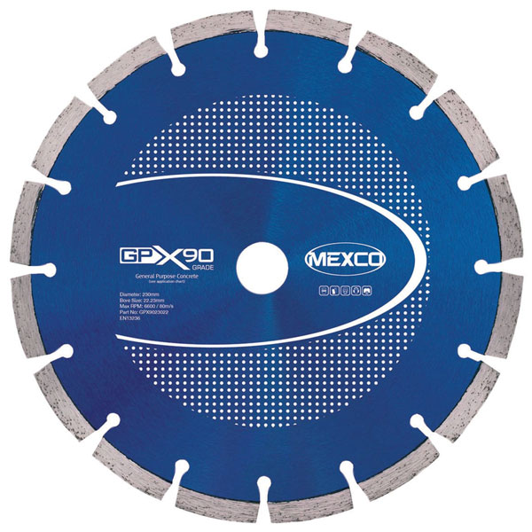 MEXCO GPX90 Concrete Diamond Blades provide the user with excellent cutting characteristics in the majority of non-abrasive construction products used in the UK.
