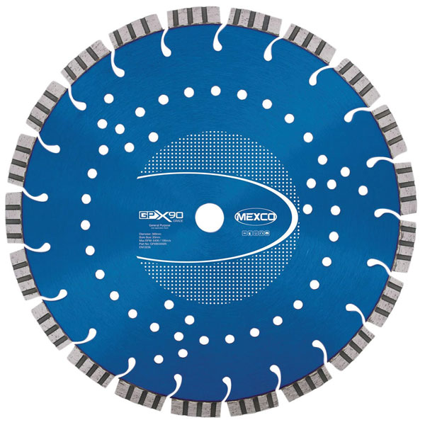 MEXCO GPX90 Concrete Diamond Blades provide the user with excellent cutting characteristics in the majority of non-abrasive construction products used in the UK.
