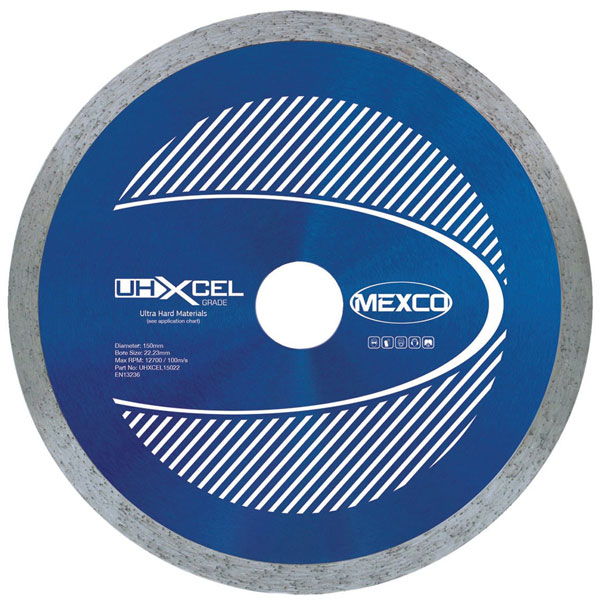 MEXCO UHXCEL Ultra Hard Plus Diamond Blades have been specifically designed and manufactured for cutting ultra hard materials such as; Granite, Porcelain, Marble, Ceramic Tiles, Clay Roof Tiles and other hard natural stone and man-made fired materials.