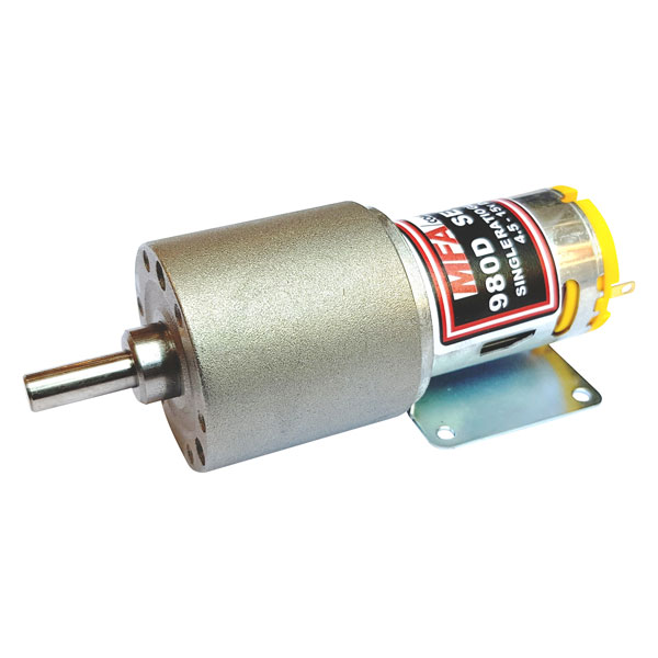 Spur-geared metal gearbox, 750:1 Gear Ratio, 4.5 to 15V Voltage Rating, 6.21W Power Rating, 11,000rpm No Load Speed, 9281rpm Maximum Speed, 0.837A Load Current, 65.3g-cm Maximum Continuous Torque, 417.6g-cm Stall Torque, 35mm Diameter, 6mm Shaft Diameter, 68.0mm Long, 168g weight. Powerful 5-pole Motor, The Gearboxes are of All-Metal Construction and Employ Spurred Gears High Torque Transfer, Output Bearings Enable the High Torque from the Motor to be Efficiently Transmitted Through the Gearbox, Suitable for Heavy-duty Industrial and Model Applications, MFA/COMO 980D Series.