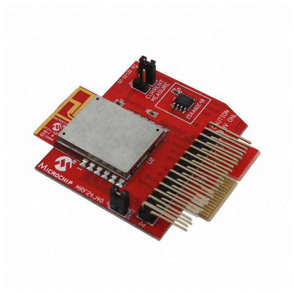 This daughter board is used to demonstrate and evaluate the Microchip MRF24J40MB 2.4GHz RF Tranceiver Module. The board can plug into multiple Microchip development boards such as the PIC18 Explorer board or the Explorer 16 development board.