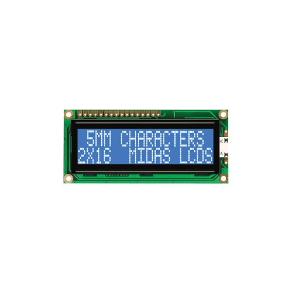 Midas Displays MC21605A6WD-BNMLW 16x2 STN White on Blue LCD Display 84x44mm