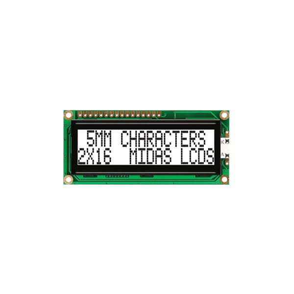 Midas Displays MC21605B6W-FPTLW 16x2 FSTN Black on White LCD Display 85x36mm