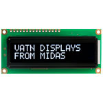 An LCD display with an 16 character x 2 line display, white LED backlight and featuring VATN (Vertically Aligned Twisted Nematic) technology.