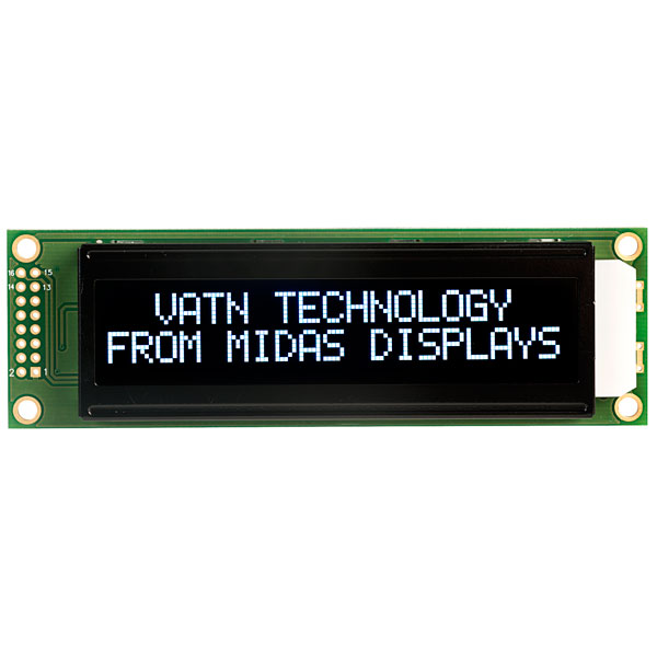 Midas Displays MC22005A12W-VNMLW 20x2 VATN LCD Display Negative Mode White