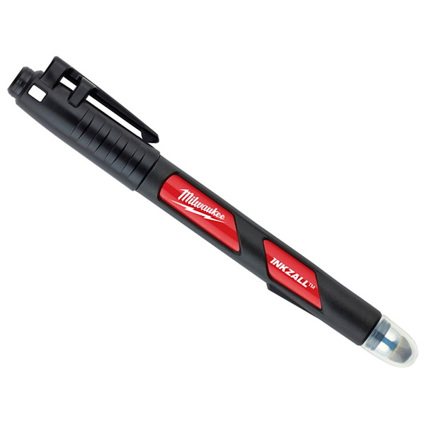 The Milwaukee Hand Tools INKZALL™ Fine Point Marker stays sharp, doesn't mushroom or push back under pressure. It has an acrylic nib, ideal for rough surfaces such as OSB and concrete. The stylus end can be used on iPads, iPhones, tablets and touch phones.
