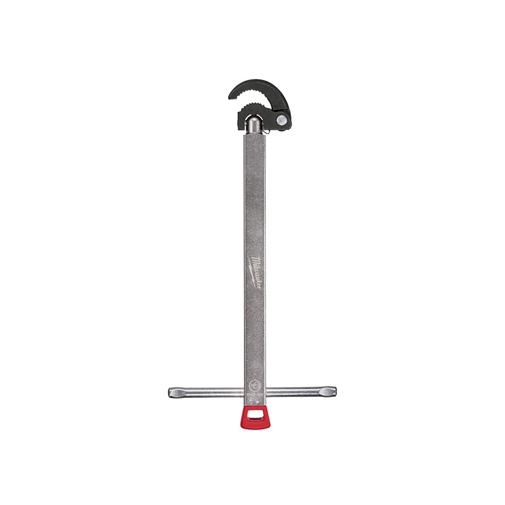 Milwaukee Hand Tools Adjustable Basin Wrench with a hi-leverage design, which enables it to achieve break-away torque on stuck fasteners. The ratchet compatible design accepts a 3/8in ratchet. Fitted with a doorknob style handle that is easy to adjust, offers the best in class adjustability.