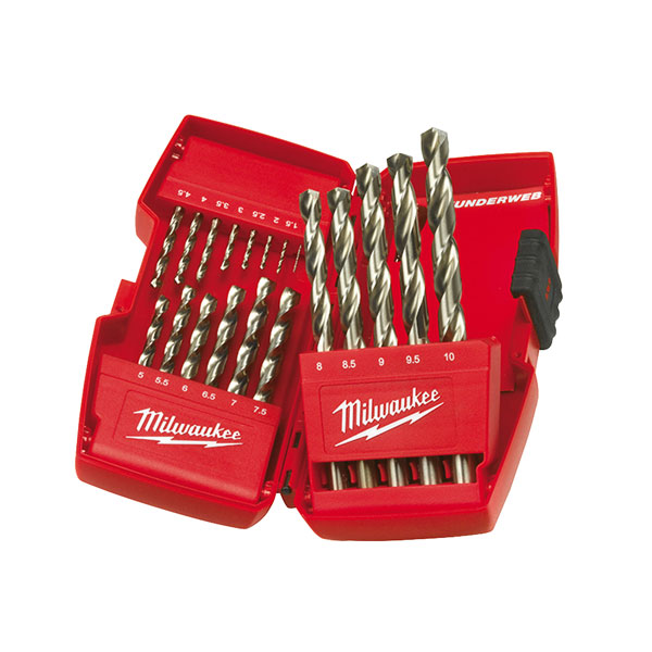 The Milwaukee Metric HSS-G THUNDERWEB Metal Drill Bit design is unique, with a conical shaped web which gets thicker towards the back of the drill bit. It has a parabolic web cross section that gives a larger web thickness increasing the strength of the bit, and prevents breakage.