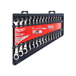 The Milwaukee Hand Tools MAX BITE™ Ratcheting Combination Spanner 15 Piece Set comes in a tray for easy storage in tool cabinet drawers.