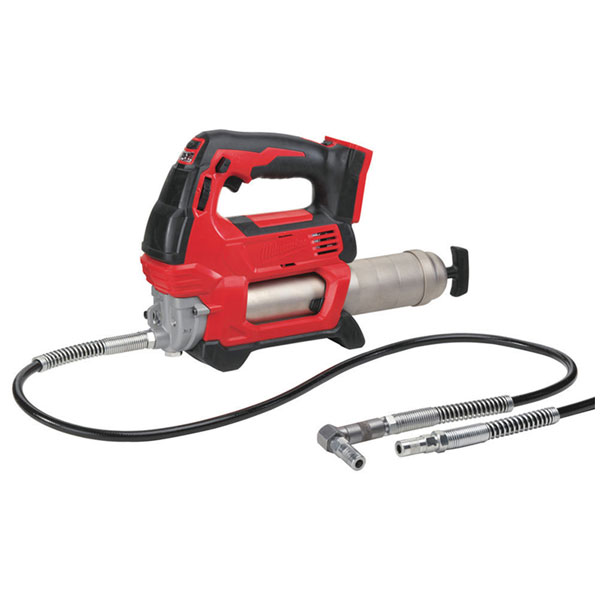 The Milwaukee M18 GG-0 Cordless Grease Gun has a powerful motor that delivers over 562 bar maximum operating pressure. It features REDLINK™ overload protection electronics in tool and battery pack delivering best in class system durability. Fitted with a 1219mm high pressure flex hose with spring guard. Offers superior handle balance and ergonomics, at only 355mm long and weighing only 3.9kg.