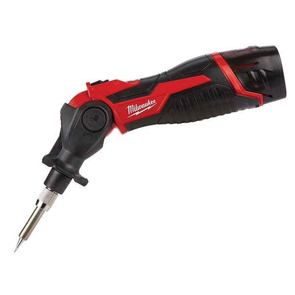 The Milwaukee M12 SI Cordless Soldering Iron has a quick heat up time, ready to use in under 30 seconds. With 3 locking head positions: 0°, 45° and 90°. For work in multiple orientations. Temperature monitoring to maintain heat throughout the toughest of applications.