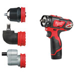 The Milwaukee M12 BDDX Removable Chuck Drill Driver is a high performance sub compact 4-in-1 drill driver system for extreme versatility. The removable chuck system with 3 different heads for multiple applications: 1 x M12 BDDX-CK 10mm Keyless Chuck, 1 x M12 BDDX-OA 1/4in Hex Offset Head and 1 x M12 BDDX-RAA 1/4in Hex Right Angle Attachment.
