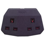 This black, 2-gang, 13A extension lead socket has a ruggedly constructed rubber body, nylon shutters and all internal parts are retained in the body for easy wiring.