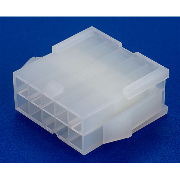 Mini-fit panel plug with 10 ways from the Molex 5559 Series, designed for power interconnection where space is at a premium.
