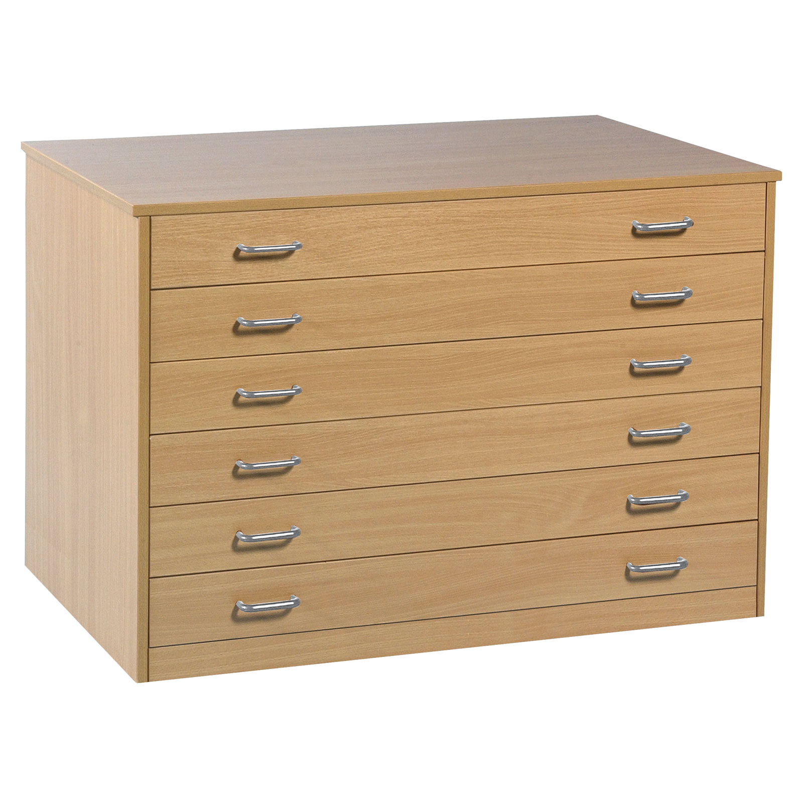 A six-drawer plan chest, ideal for flat storage of artwork, drawings, layouts, large graphics, circuit diagrams, etc.