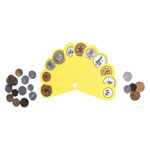 Plastic money fans with colour printed coins.