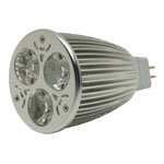 A MR16 LED lamp assembly in warm white that contains 3x 2W LEDs and has pin connections. The lamp has a typical 12V AC or DC forward voltage meaning it is suitable for a wide range of applications in solid state lighting systems. Crafted from aluminium and glass