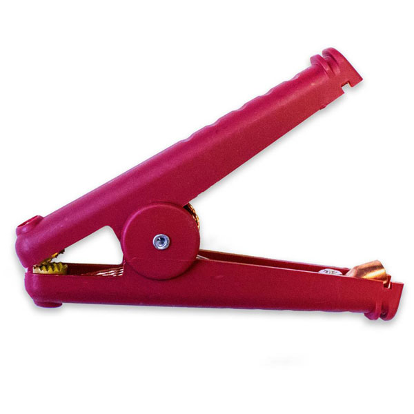 The Mueller Electric BU-102W-2 welding fixation pin is a red alligator clamp designed for secure connections with a maximum clamping range of 41 mm and a length of 165 mm. It is ideal for welding applications and electrical testing. The robust construction ensures reliable performance in demanding environments.