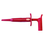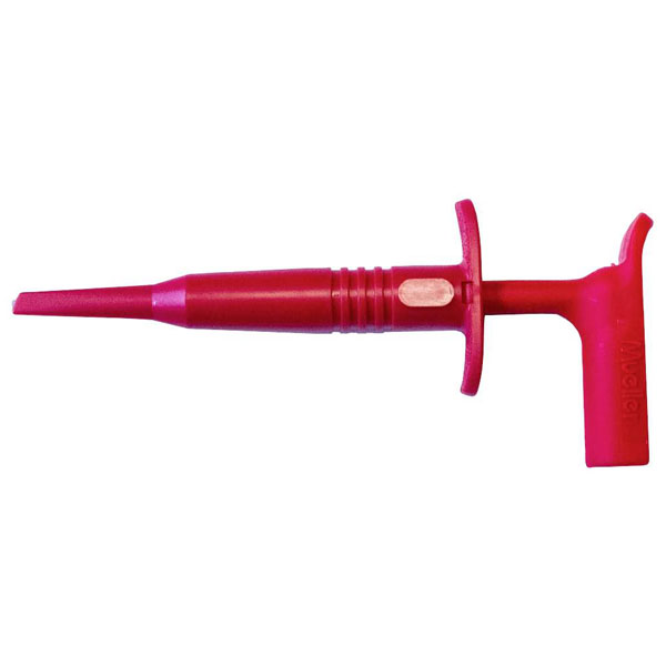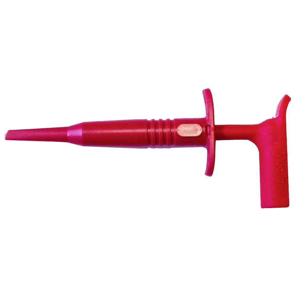 The Mueller Electric BU-20431-2 jack plug in red is a single piece component designed for reliable electrical connections. It features a durable construction typical of alligator clamps, ensuring secure attachment in various setups. This versatile plug is ideal for laboratory and electronic testing applications.