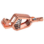 A heavy-duty copper crocodile clip, ideal for use as a battery clip on automotive equipment.