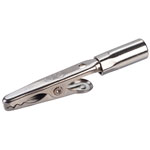 • Miniature alligator clip with threaded barrel