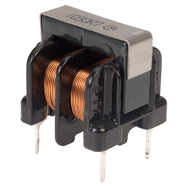 AC line filter with common mode choke coil, 10mH inductance, designed for EMI noise filtering applications.
