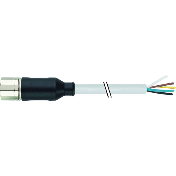 The Murrelektronik sensor/actuator connector is a right-angle socket with a M23 x 1 thread and features 19 pins. It is equipped with a 5.00 m cable, designed for robust connectivity in industrial automation systems. This connector is typically used for linking sensors and actuators to control systems, facilitating efficient data and signal transfer.