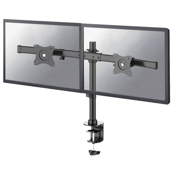 Neomounts FPMA-DCB100DBLACK is a robust monitor desk mount engineered to support dual monitors ranging from 25.4 cm (10 inches) to 68.6 cm (27 inches). Designed for maximum versatility, this mount allows for both swivelling and tiltable adjustments, enabling users to position their displays for optimal ergonomic alignment. Constructed in a durable black finish, it is ideal for professional environments where dual-monitor setups are needed, such as in control rooms, engineering workstations, and design studios. The mount features an efficient design that consolidates desk space while providing secure and stable support for increased monitor configuration capabilities.